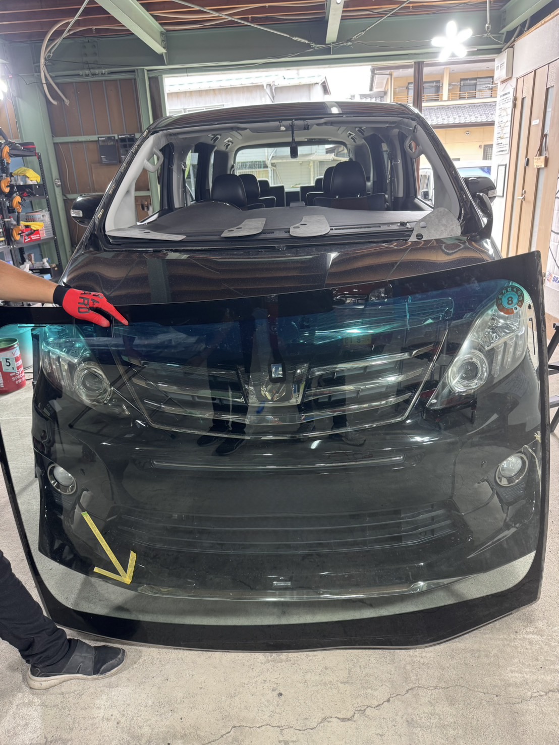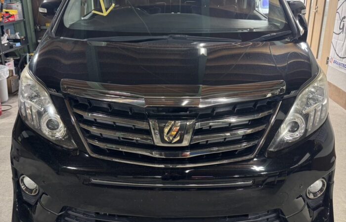 このまま放置するとヒビが広がり、雨天時の視界不良やガラス破損のリスクが高いため、早急な交換が必要な状態でした。