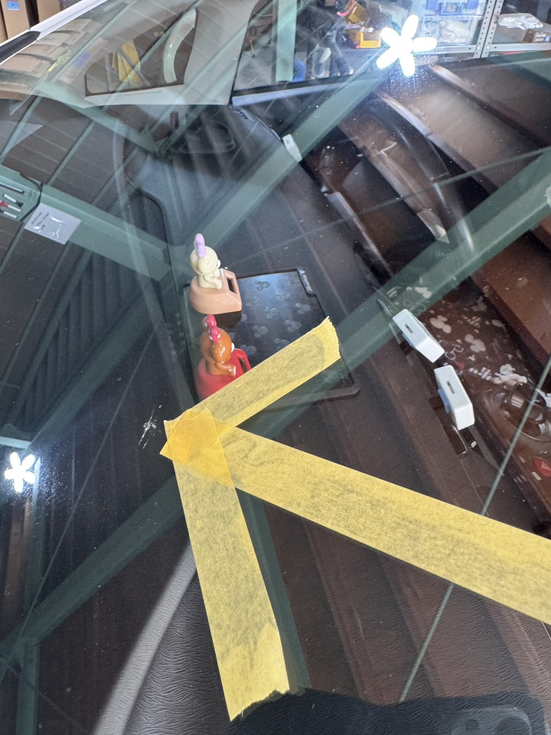 まずワイパーやモール類を丁寧に取り外し、破損したガラスを慎重に車体から分離。接着面に残っている古い接着剤や汚れをきれいに除去し、新しいガラスの取り付け準備を行いました。施工前の下地処理をしっかり行うことで、ガラスの密着性を高めます。