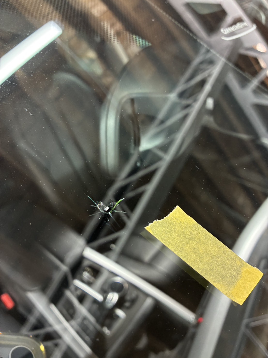 お客様から「運転席付近のガラスに飛び石によるヒビが入った」とのご相談をいただきました。ヒビが視界部分にかかっており、そのまま走行を続けるとヒビが広がる可能性があるため、安全面を考慮して早急にフロントガラス交換を行うこととなりました。